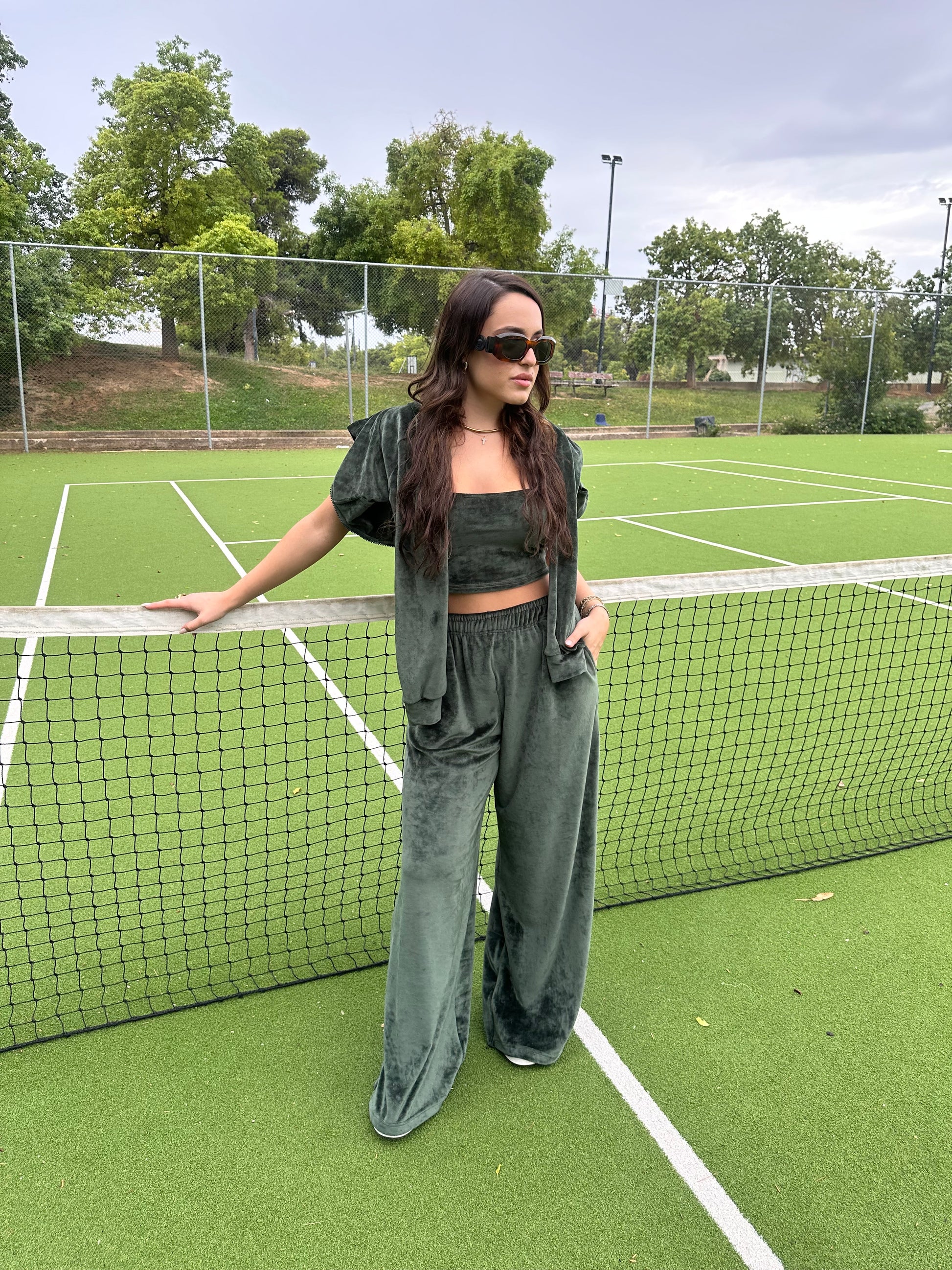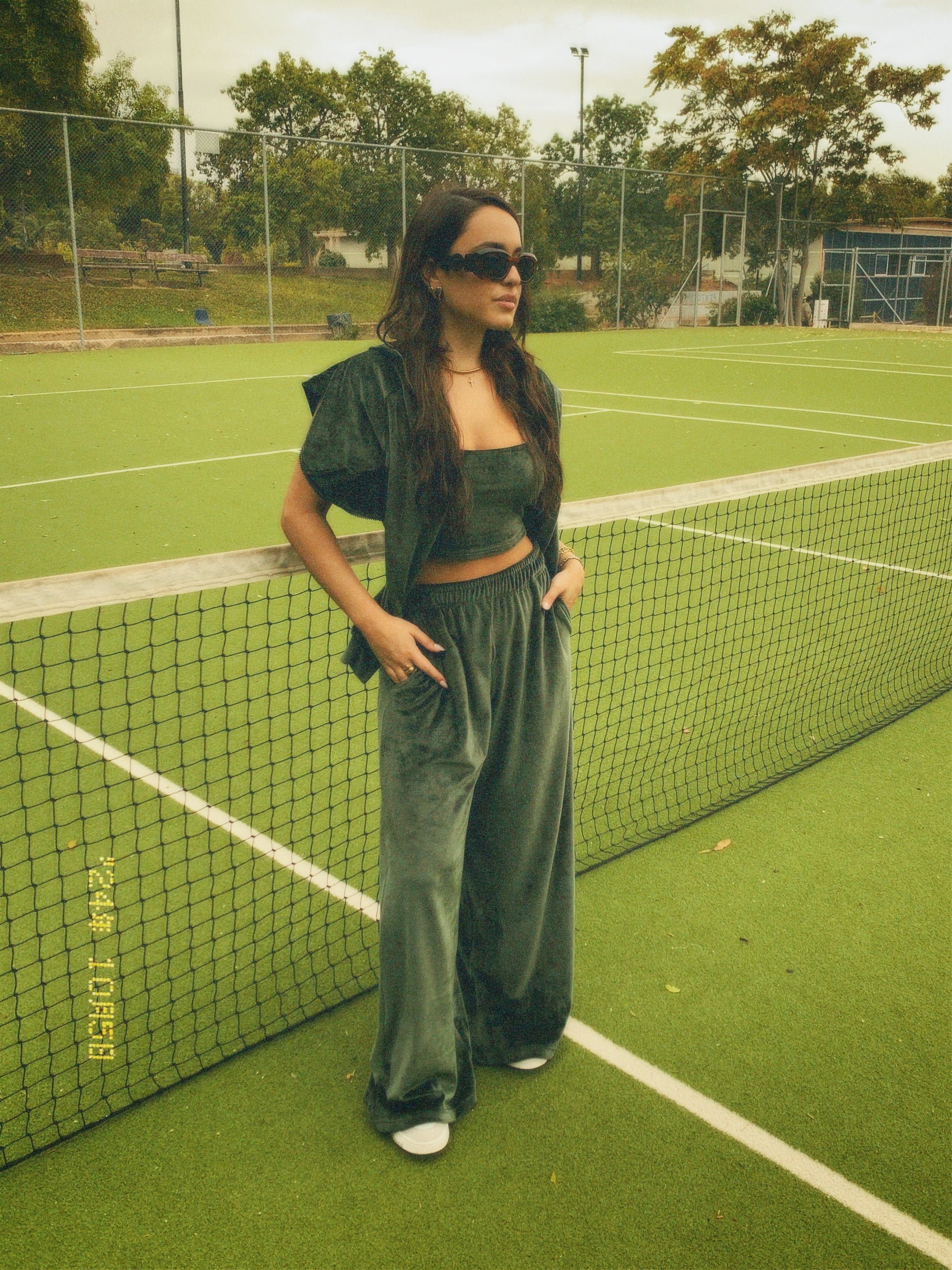 Βελούδινη μακρυά ζακέτα με φερμουάρ, κουκούλα και τσέπες. Είναι κατασκευασμένη από ελαστικό βελούδινο ύφασμα και μπορεί να συνδυαστεί με το Mika και το Danae παντελόνι. Ταιριάζει με αμέτρητα outfit και έχει εκπληκτική εφαρμογή.