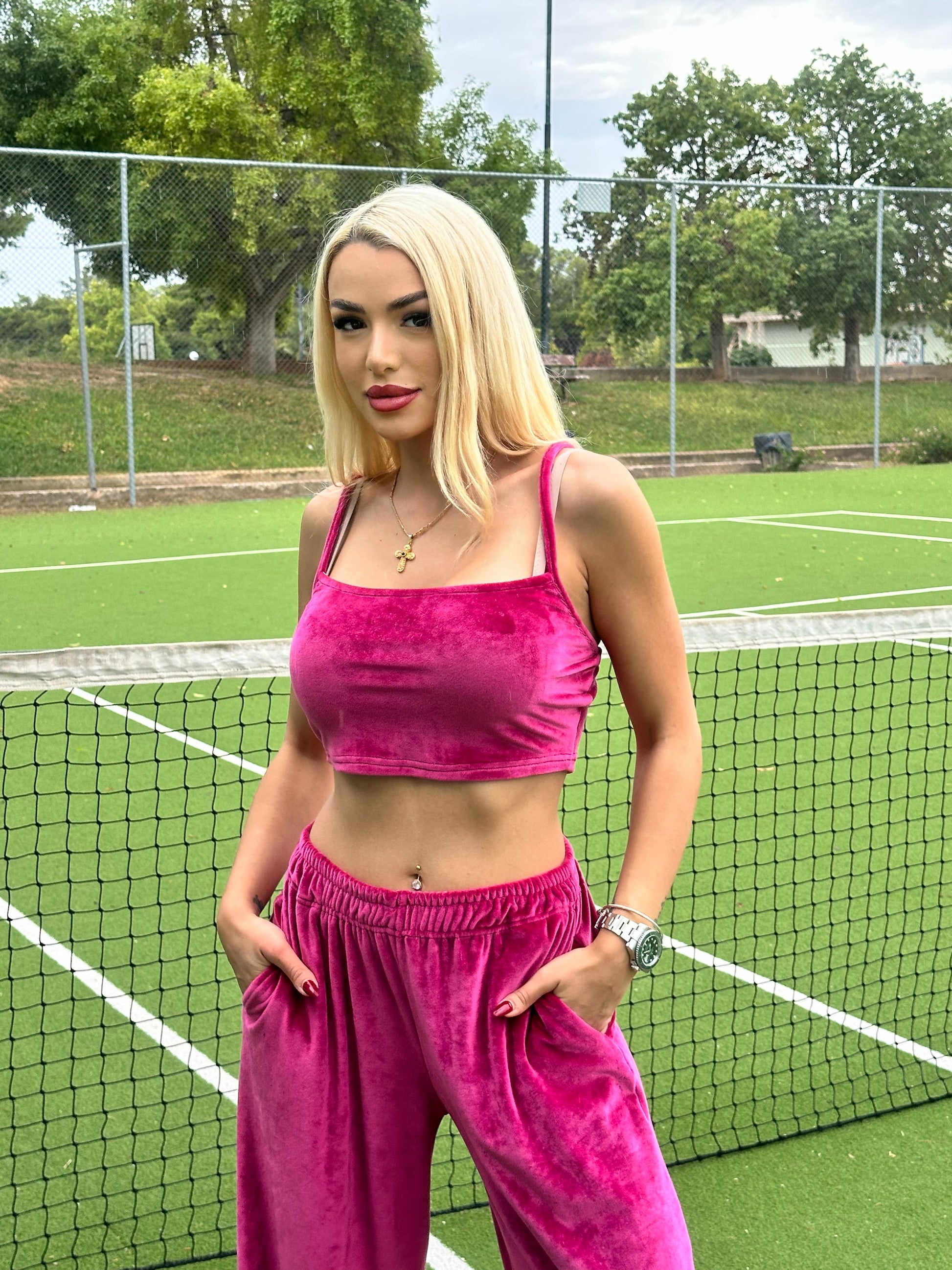 Τοπάκι με τιράντα από βελούδινο ύφασμα πολύ ελαστικό. Βγαίνει σε εφτά υπέροχα χρώματα και καλύπτει από extra small έως extra large.