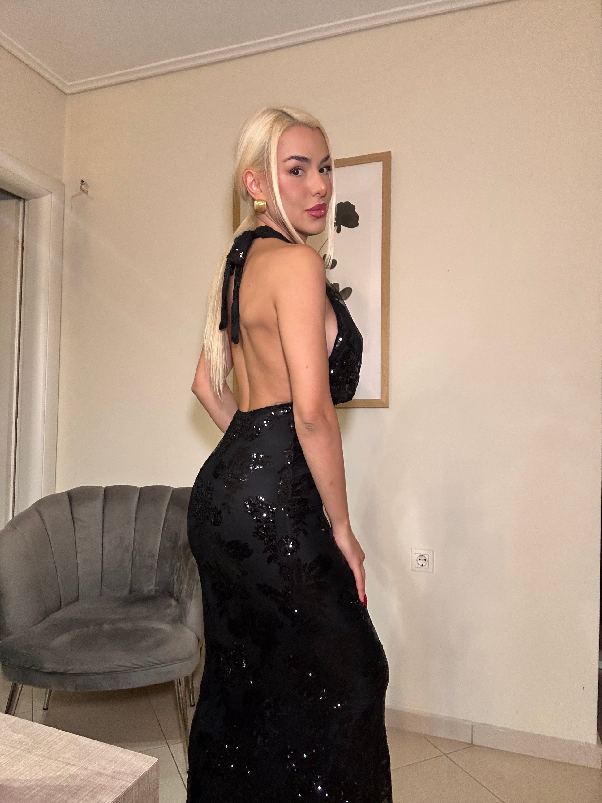 Αναδείξτε τη θεϊκή σας πλευρά με το Goddess Glow Dress – ένα φόρεμα που συνδυάζει πολυτέλεια και απόλυτη θηλυκότητα. Το maxi μήκος του αγκαλιάζει τη σιλουέτα, ενώ το κέντημα με παγιέτες σε floral σχέδιο χαρίζει εκθαμβωτική λάμψη σε κάθε σας κίνηση.