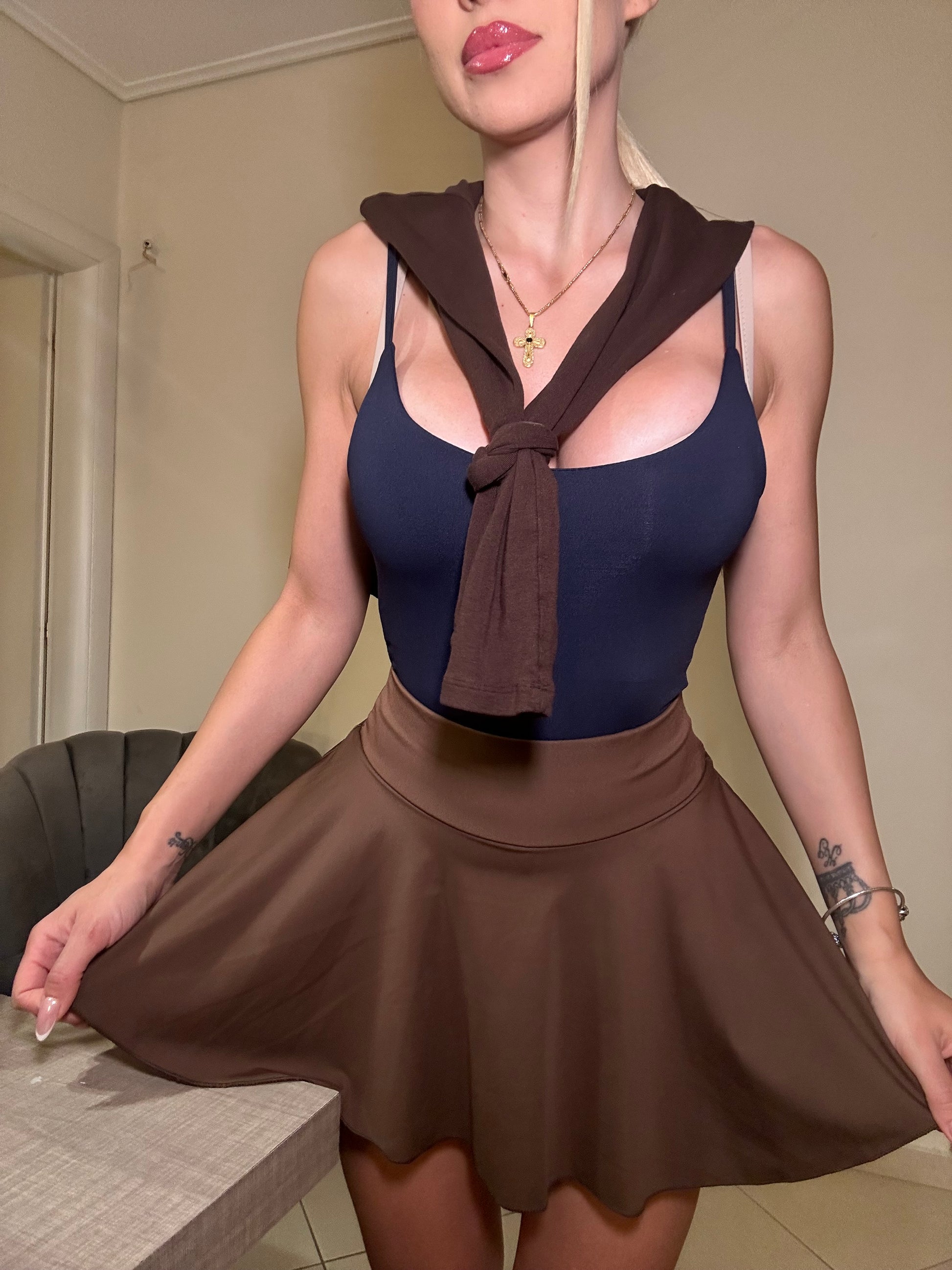 Το απόλυτο must-have κομμάτι για τις πιο chic αλλά και πρακτικές εμφανίσεις σου. Αυτή η skater-style μίνι φούστα διαθέτει ενσωματωμένο εσωτερικό σορτς που προσφέρει άνεση, στήριξη και ελευθερία κινήσεων όλη μέρα!