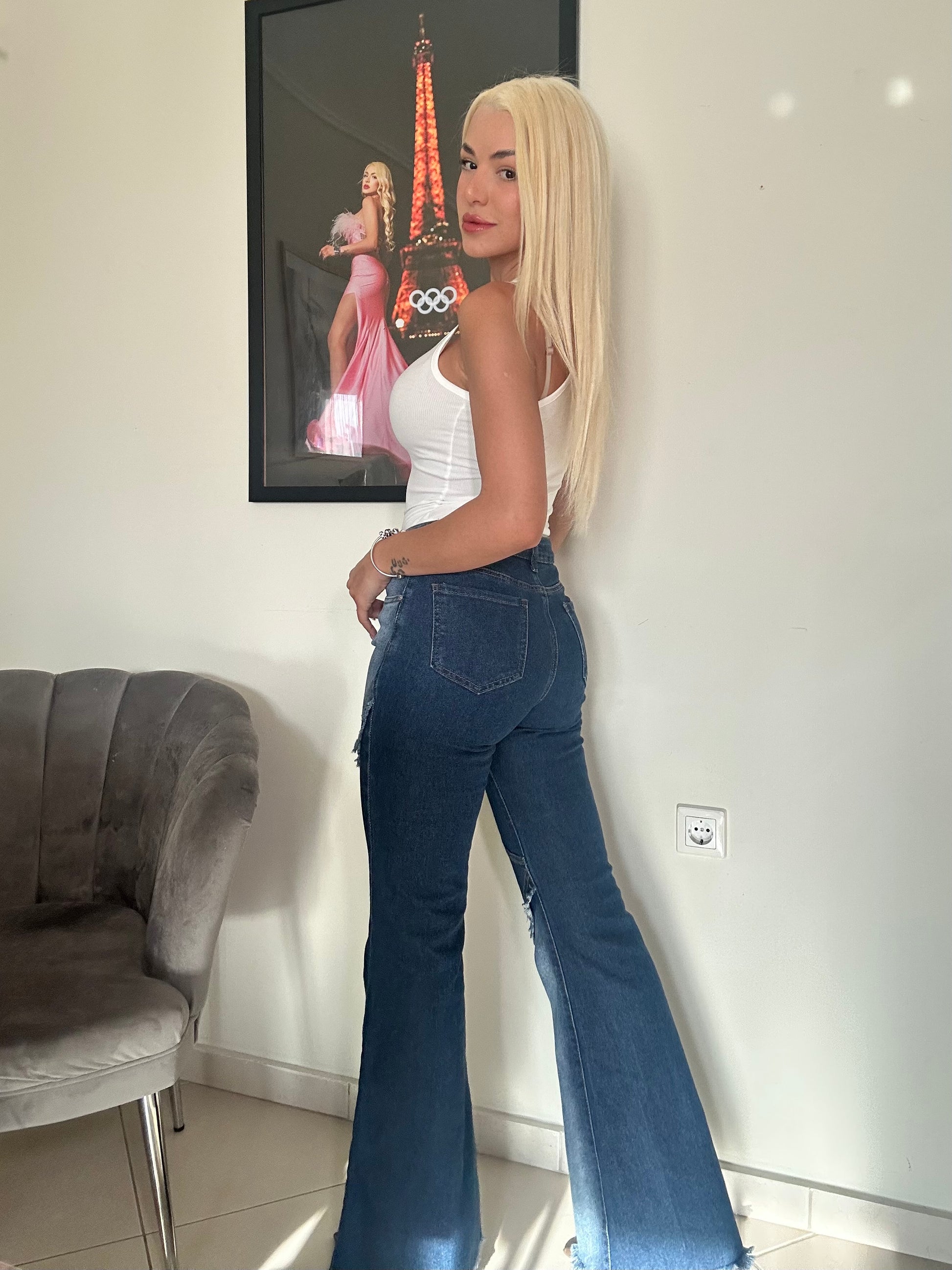 Το τζιν που κάνει τη διαφορά. Το “Venus” συνδυάζει δύο τόνους denim σε ένα μοναδικό patchwork σχέδιο με flare γραμμή που κολακεύει κάθε σιλουέτα. Statement και casual ταυτόχρονα, είναι η τέλεια επιλογή για εμφανίσεις που τραβάνε βλέμματα.
